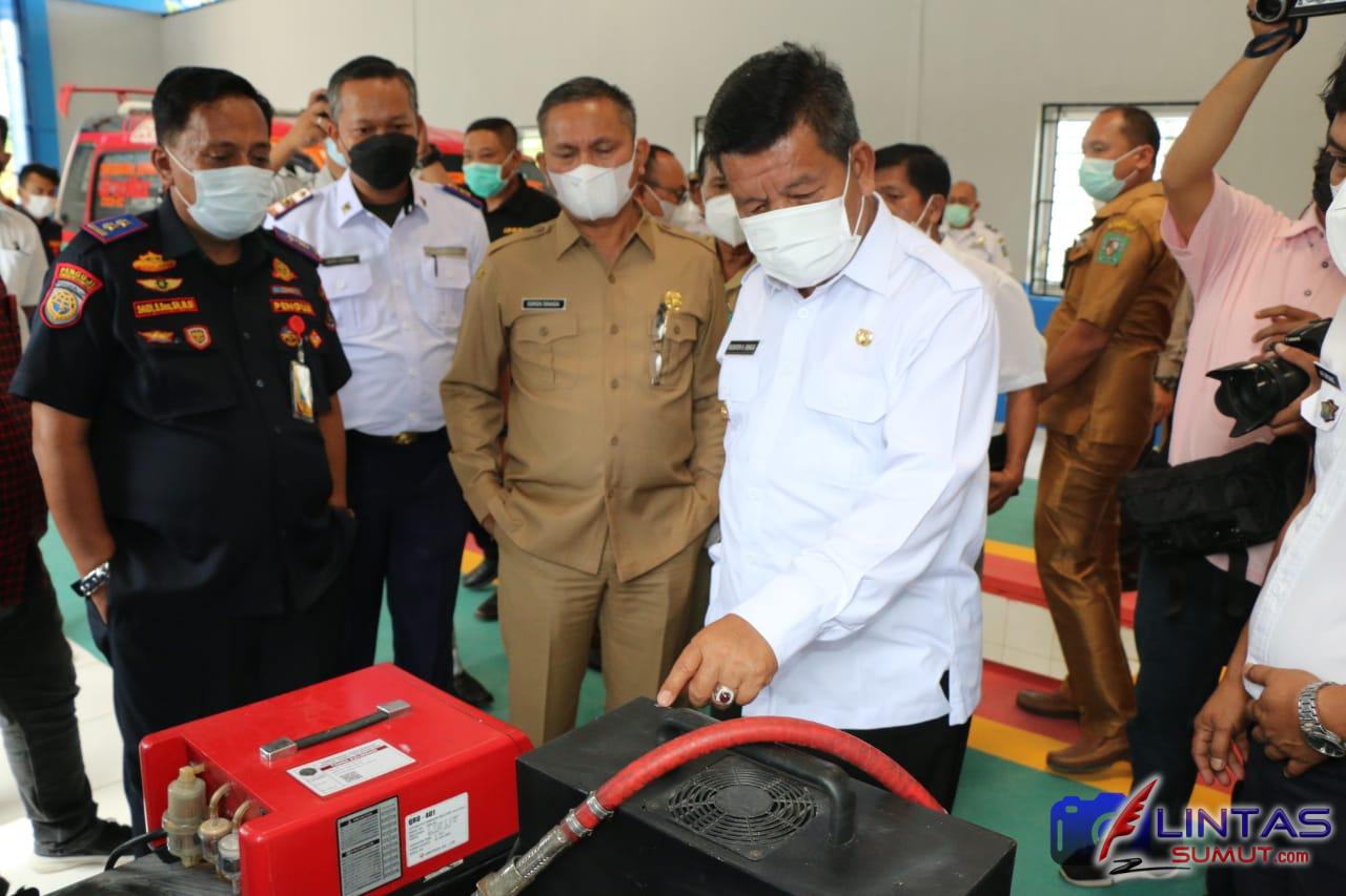 Bupati Simalungun Radiapoh Hasiholan Sinaga Launching Unit Pelaksana Uji Berkala Kendaraan Bermotor (UPUBKB) Akreditasi B, Jln Horailam, Pamatang Raya Kabupaten Simalungun, Sumut, Senin (6/12/2021).