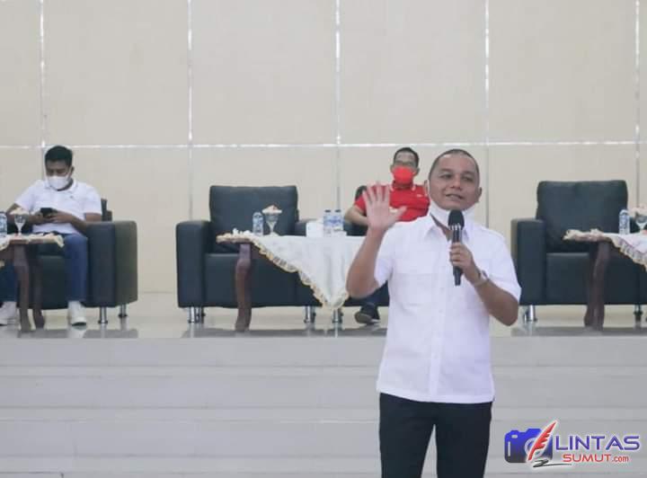 Bupati Tapanuli Tengah Bakhtiar Ahmad Sibarani menyemangati para petugas kebersihan yang bertugas di Dinas Lingkungan Hidup dengan memberikan bantuan berupa beras 10 kg dan uang lauk pauk.