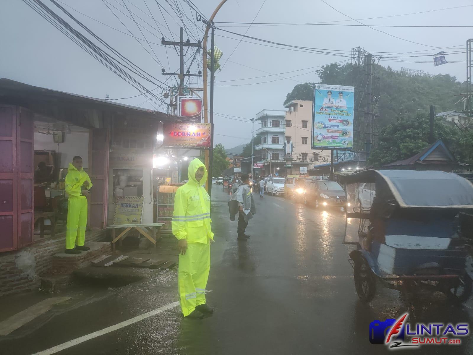 Polres Sibolga yang terdiri dari satuan tugas Preventif dan KAMSEL Ops Ketupat Toba 2023, turun langsung ke Jalan SM. Raja perbatasan antara Sibolga dan Tapanuli Tengah akibat curah hujan yang tinggi mengakibatkan Banjir yang meluap ke Jalan Raya.