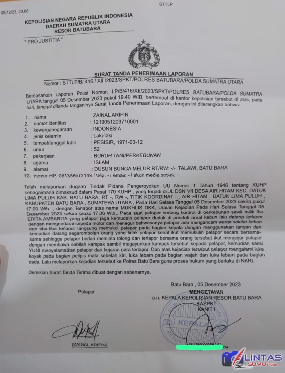 Sementara Kasat Reskrim Polres Batu Bara, AKP Irfan Mochammad Nur Alireja, S.I.K. CPHR. CBA melalui KBO Reskrim Iptu Arianto Sitorus membenarkan adanya kejadian tersebut ketika dikonfirmasi wartawan via WhatsApp, Rabu (6/12/23) sekira pukul 11.15 Wib.