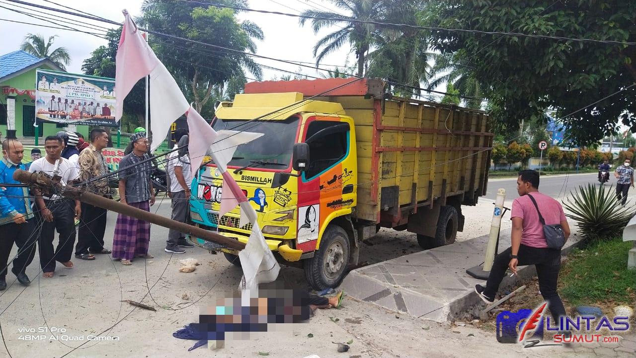 Laka lantas Truk vs pejalan kaki dan pesepeda motor itu sontak mengejutkan warga yang tidak jauh dari TKP disekitaran halaman kantor Bupati Batu Bara.