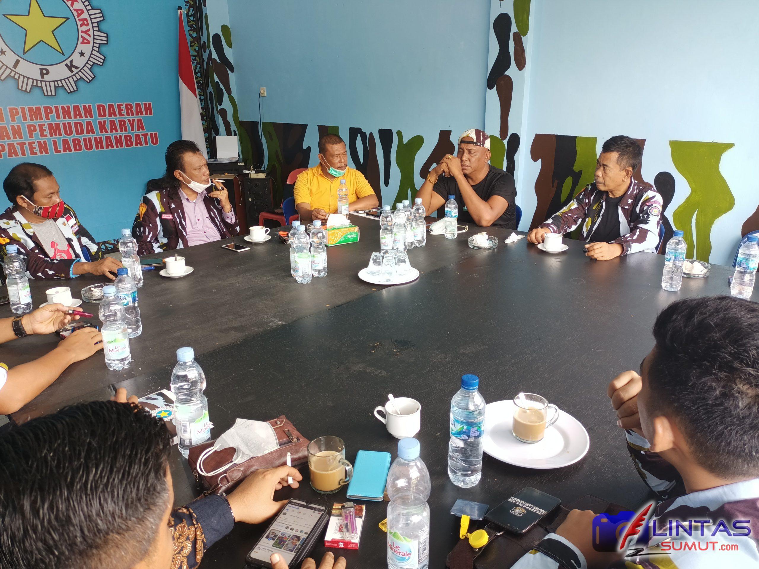 IPK Labuhanbatu Menerima kunjungan Personil Satuan Intelkam Polres Labuhanbatu yang melakukan Pengumpulan Bahan Keterangan (Pulbaket) / Giat Tukjar terhadap kepengurusan baru DPD IPK Labuhanbatu, di Kantor DPD IPK Labuhanbatu, Jalan H.Adam Malik / Jalan Baru Ruko DL Sitorus, Kecamatan Rantau Selatan, Kabupaten Labuhanbatu, Sumatera Utara, Selasa (31/8/2021) Sekira Pukul 16.00 WIB.