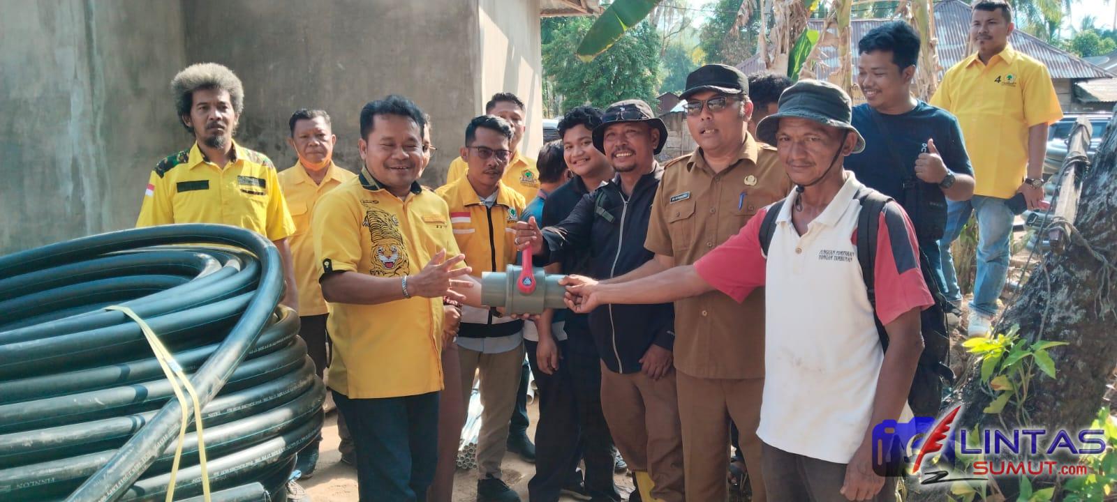 DPD Partai Golkar Kabupaten Tapanuli Tengah menyalurkan bantuan alat instalasi air bersih berupa pipanisasi sepanjang 2.000 meter lengkap dengan kran air kepada masyarakat Lingkungan I, Kelurahan Hutanabolon, Kecamatan Tukka, Senin (26/1/2026).
