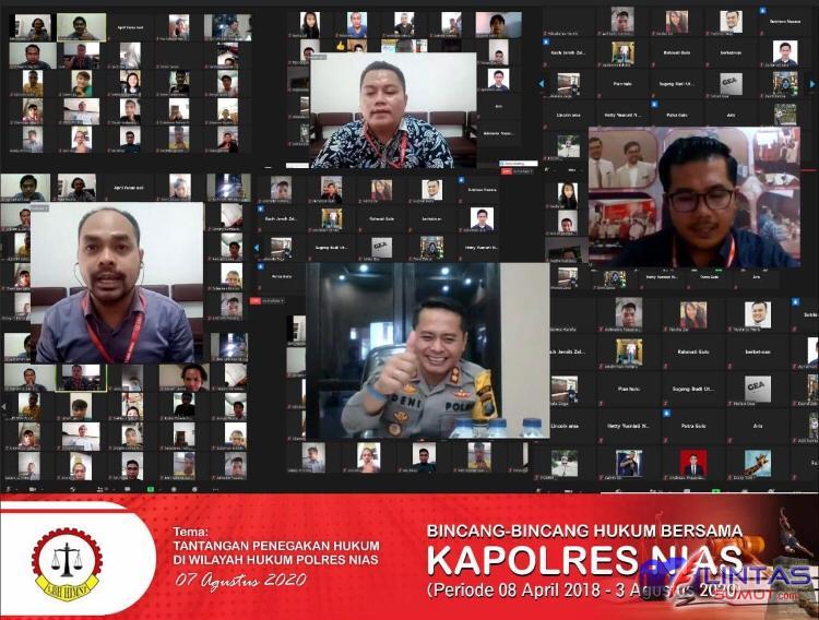 Himpunan Masyarakat Nias Indonesia (HIMNI) menyelenggarakan zoom meeting Bincang Bincang Hukum Bersama Kapolres Nias. Jumat (07/08/2020) sore