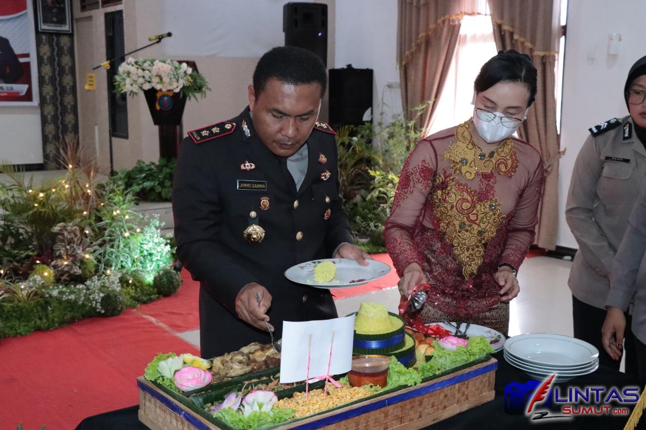 Dalam acara itu, pemotongan nasi tumpeng oleh Kapolres Tapteng Jimmy Christian Samma S.I.K bersama ketua Bhayangkari Cabang Tapteng, dilanjutkan penyerahan nasi tumpeng kepada PJ. Bupati Tapteng Yetty Sembiring.