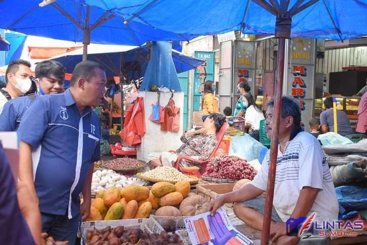 Paslon Walikota dan wakil walikota Sibolga jamal-Pantas nomor urut 01 memampiri pasar nauli di jalan patuan anggi kelurahan Pancuran Gerobak, Kecamatan Sibolga Kota, Kota Sibolga, Rabu (11/11/2020) Sekira jam 10.00 Wib