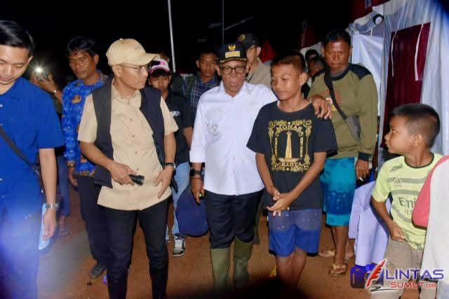 Dalam kunjungan tersebut, Bupati Masinton Pasaribu bersama Wakil Kepala BP Taskin Iwan Sumule melakukan peninjauan langsung ke lokasi pengungsian warga terdampak bencana banjir bandang dan tanah longsor di Kelurahan Hutanabolon, Kecamatan Tukka, pada Rabu (17/12/2025) malam.