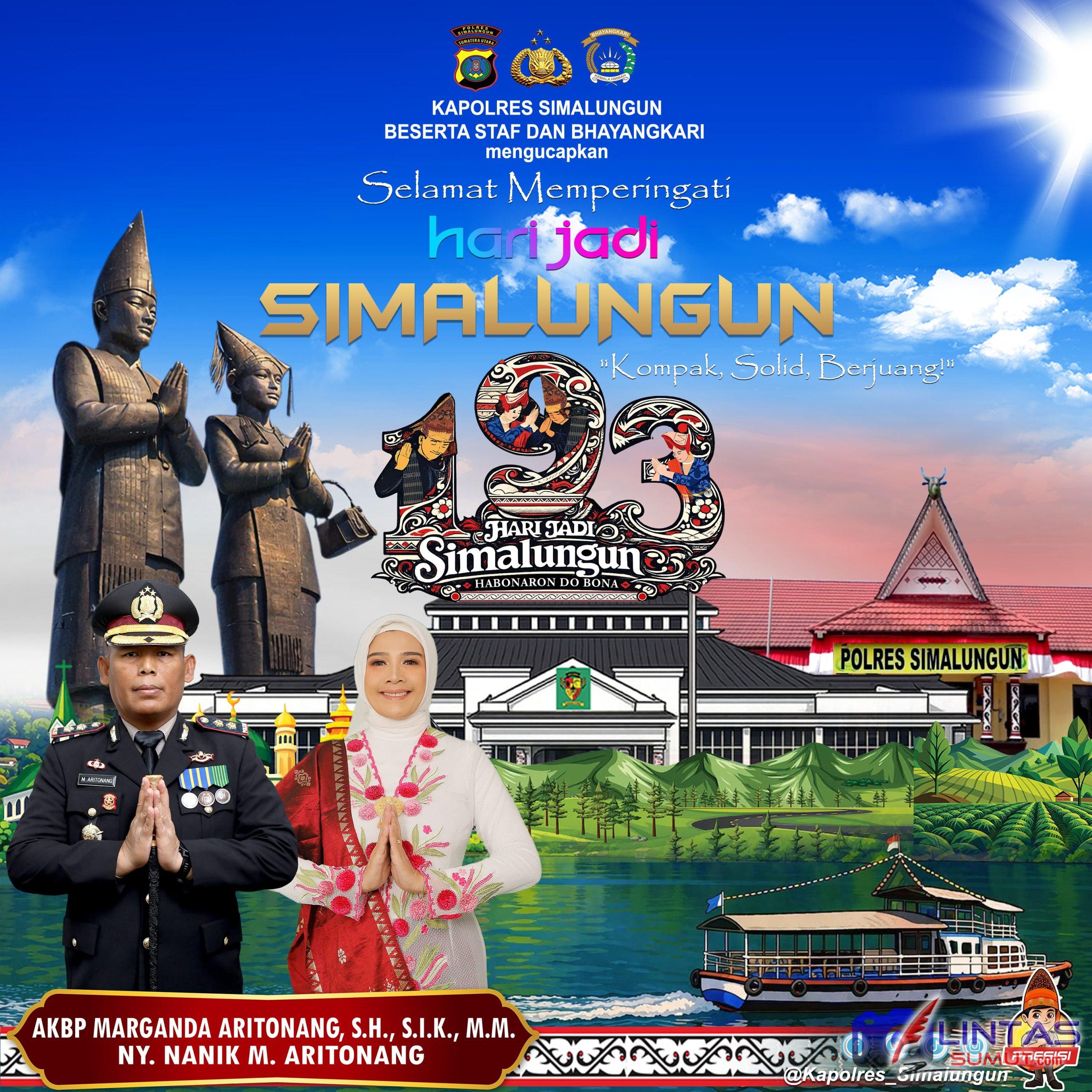 Momentum bersejarah Hari Jadi Kabupaten Simalungun yang ke-193 tahun menjadi kesempatan bagi jajaran Polres Simalungun, Polda Sumatera Utara, untuk menegaskan kedekatan dan kebersamaan institusi Polri dengan masyarakat yang dicintainya. Kapolres Simalungun, AKBP Marganda Aritonang, S.H., S.I.K., M.M., didampingi Ibu Ny. Nanik M. Aritonang beserta seluruh staf dan Bhayangkari Polres Simalungun, dengan penuh kebanggaan dan kehangatan menyampaikan ucapan selamat kepada seluruh masyarakat Kabupaten Simalungun dalam peringatan hari bersejarah ini.