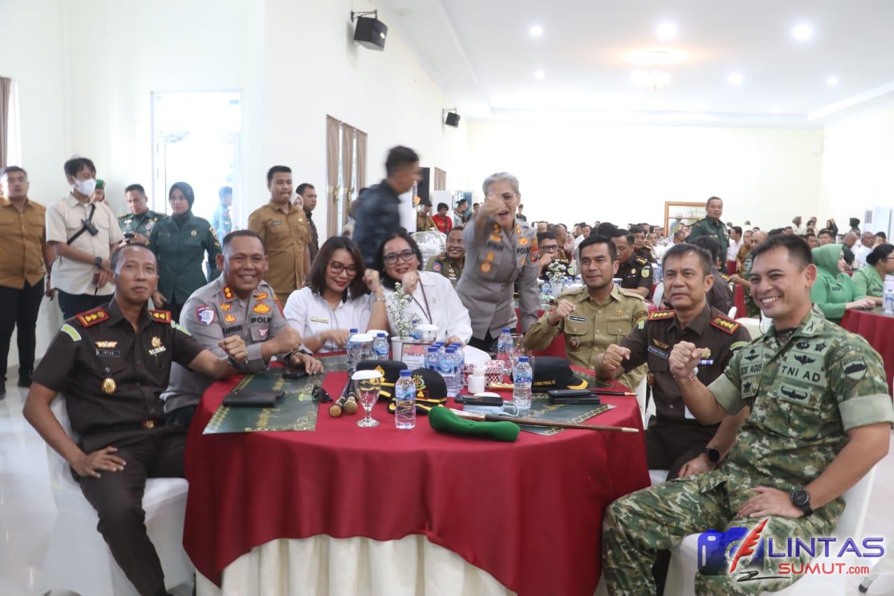 Unsur penegak hukum juga hadir lengkap, termasuk Kajari Simalungun Irfan Hergianto, SH., MH., Ketua Pengadilan Negeri Simalungun Ibu Erika Sari Emsah Ginting S.H., M.H., dan dari unsur legislatif hadir Ketua DPRD Simalungun Sugiarto, S.E.