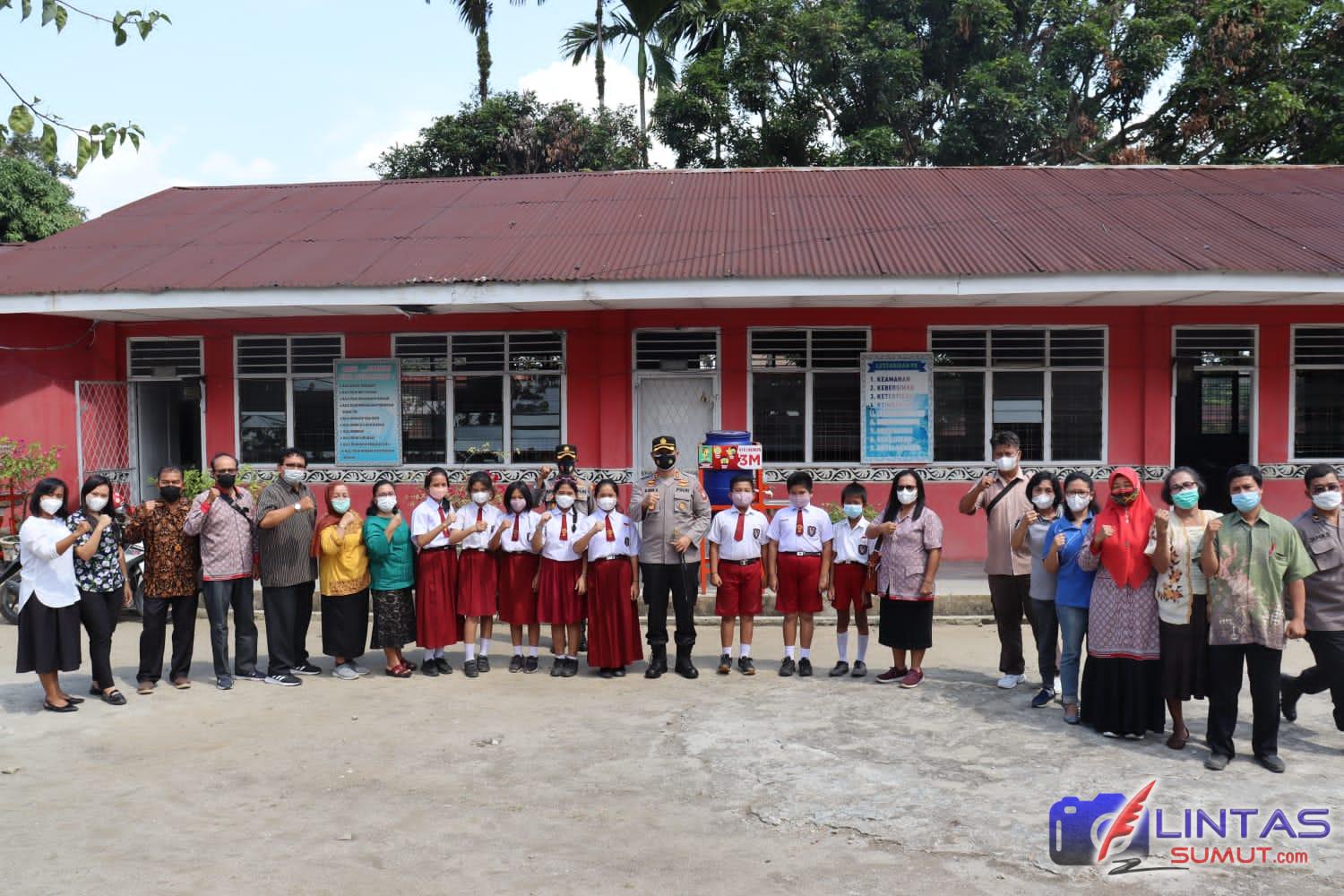Kapolres Simalungun AKBP Nicolas Dedy Arifianto SH, SIK MH meninjau pelaksanaan kegiatan Vaksinasi Merdeka Anak umur 6-11 tahun yang bertempat di SD Negeri 095551 Jalan Asahan Kecamatan Siantar Kabupaten Simalungun, Jumat (14/1/2022) siang sekira pukul 12.30 Wib.