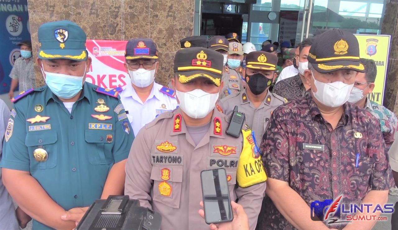 Menjelangnya natal dan tahun baru (Nataru) 2022 di wilayah kota Sibolga, Kapolres Sibolga AKBP Taryono Raharja bersama Forkopimda Sibolga meninjau pelabuhan penyeberangan Pelindo Sibolga yang berada di jalan Horas Sibolga untuk meninjau kedatangan penumpang dari Kepulauan Nias ke kota Sibolga, pada Kamis (18/11/2021).