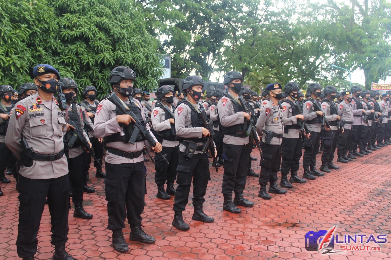 Kepolisian Resor Nias menggelar Apel Pergeseran Pasukan BKO dari Polda Sumut untuk Pengamanan TPS pada Pilkada serentak Tahun 2020 di Wilayah Hukum Polres Nias, bertempat di Lapangan Apel Mapolres Nias, Jalan Bhayangkara No.01 Kecamatan Gunungsitoli Kota Gunungsitoli, Senin (07/12/2020).