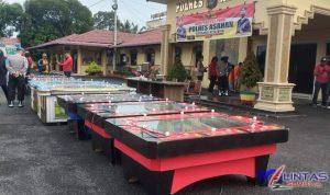 Bergerak cepat, Polres Asahan dan Kodim 0208/As menggerebek empat lokasi yang diduga dijadikan tempat perjudian jenis Ketangkasan Game ikan / Game Zone, Jumat (22/7/22).