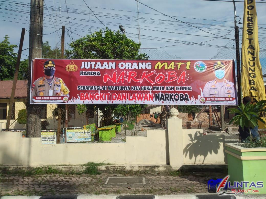 Dalam misi memberantas peredaran Narkoba, Polres Tanjung Balai tebar 5 spanduk kampanye anti Narkoba di 5 Polsek di Kota Tanjung Balai, Kamis (25/6).