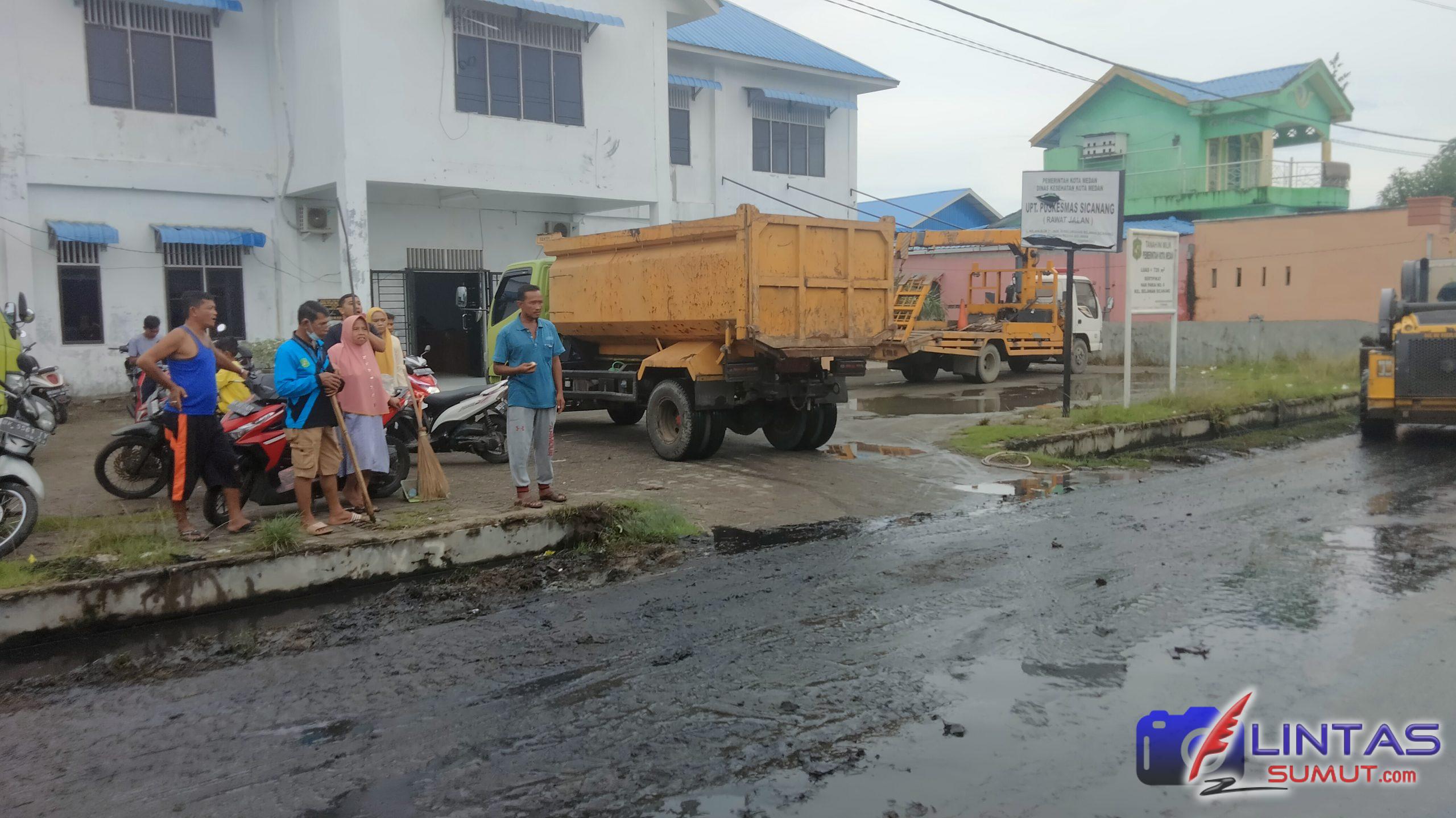 Pembersihan saluran drainase dilakukan untuk membersihkan dan mengorek sampah yang menyumbat saluran air di depan UPT Puskesmas Sicanang dan sepanjang jalan kelapa sicanang agar saluran dapat berfungsi sebagaimana mestinya.
