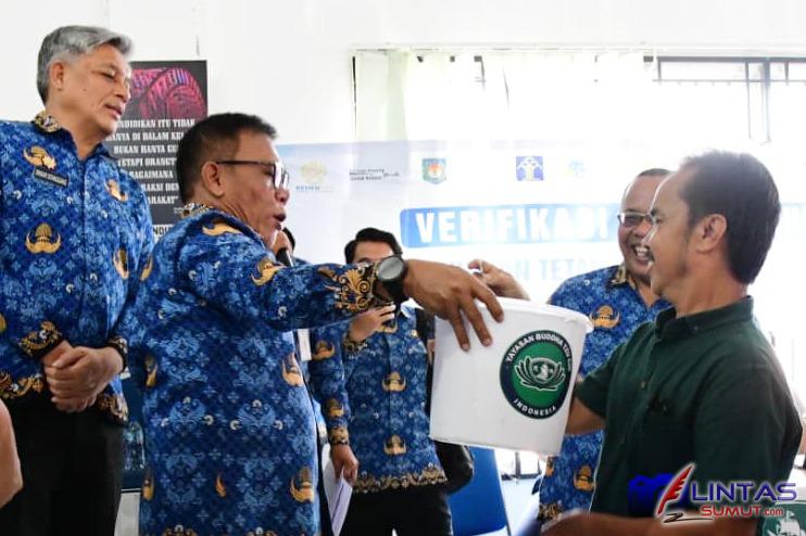 LINTASSUMUT.COM, TAPTENG | Pemerintah Kabupaten (Pemkab) Tapanuli Tengah (Tapteng) menggelar verifikasi dan pengundian 118 unit Hunian Tetap (Huntap) Tahap I di kawasan Asrama Haji Pinangsori, Senin (27/4/2026), bertempat di Aula Dinas Pendidikan Tapteng.