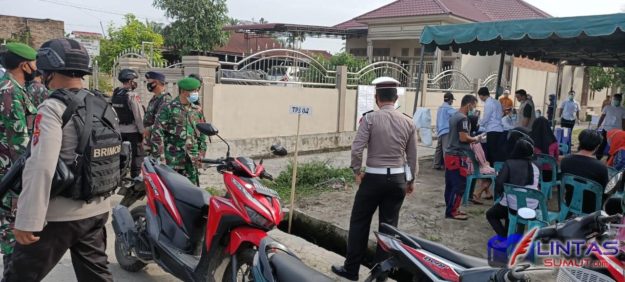 Menciptakan situasi Kondisi Aman, Nyaman dan Kondusif, Polres Tanjung Balai bersama TNI menggelar patroli skala besar pada saat pelaksanaan pemungutan suara Pemilihan Kepala Daerah (Pilkada) Kota Tanjung Balai, Rabu (9/12) sekitar pukul 8.00 Wib hingga 10.00 Wib