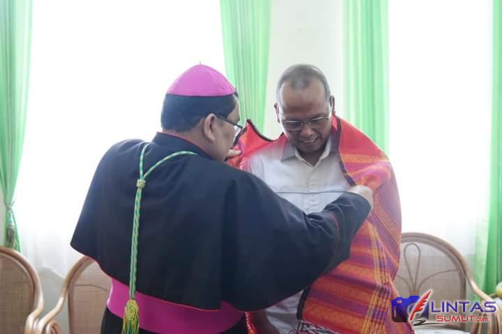 Kedatangan Pj. Bupati Tapteng disambut baik oleh Uskup Sibolga Mgr. Fransiskus Tuaman Sasfo Sinaga didampingi Sekretaris Keuskupan Sibolga Blasius Super Yesse.