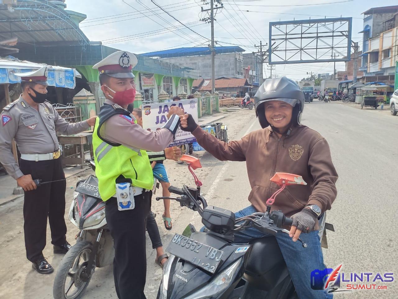 Saat pelaksaan Ops Patuh Toba Tahun 2020, Polres Tanjung Balai tetap melaksanakan Hinbauan / Sosialisasi Adaptasi Baru dalam rangka pencegahan Virus Corona (Covid19).