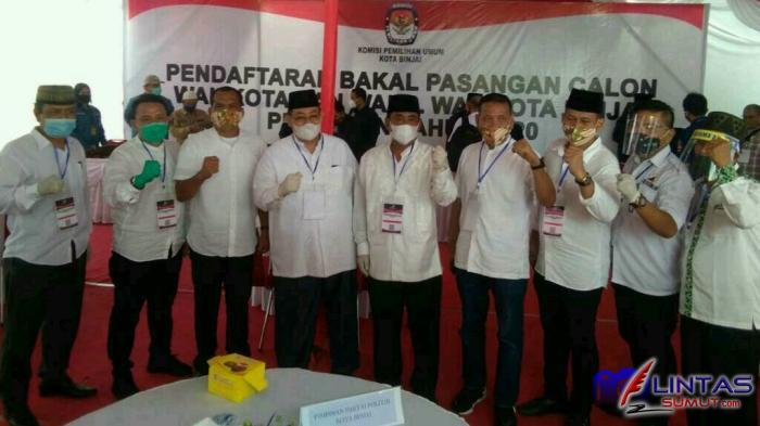 Pendaftaran Bakal Calon Walikota dan Wakil Walikota Binjai tahun 2020, Pasangan H Juliadi, S.Pd.MM – Drs H Amir Hamzah, MAP, tiba di Kantor Komisi Pemilihan Umum (KPU) Kota Binjai, Minggu (6/9) sekira pukul 10.00 WIB