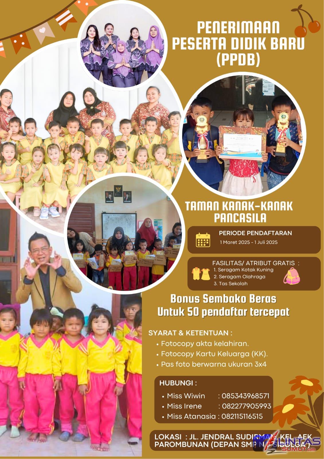 LINTASSUMUT.COM, SIBOLGA | Kabar baik bagi masyarakat Sibolga dan sekitarnya. Sekolah PAUD dan TK Pancasila yang berlokasi di Jalan Sudirman, Sibolga, kini memberikan pendidikan gratis kepada anak-anak usia dini. Tak hanya itu, peserta didik juga akan mendapatkan makanan tambahan bergizi setiap harinya.