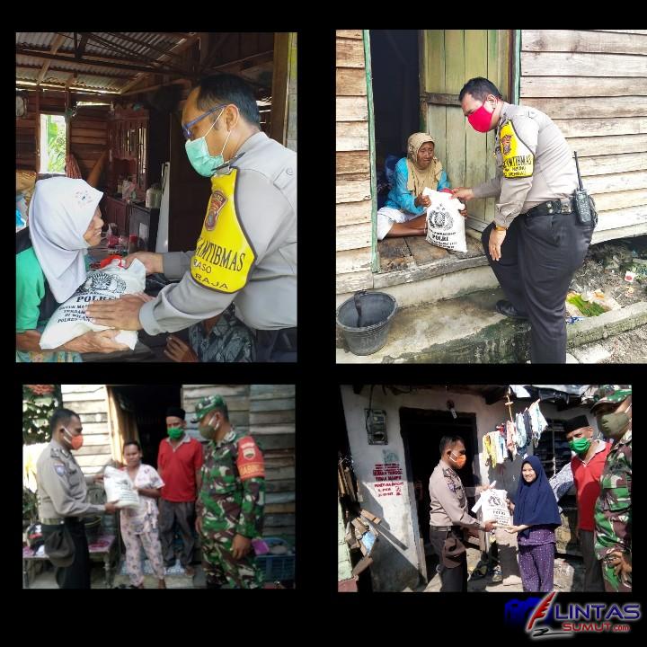 Bhabinkamtibmas Polsek Tanjung Balai Selatan Kel. Pantai Burung Bripka Bonar Hasibuan beserta Babinsa Koramil 09, menyampaikan Tali Asih 7 karung beras kepada 7 Kepala Keluarga yang tinggal di Link. I dan II serta tidak mempunyai Perkerjaan tetap /kurang mampu, Pengangguran dan Lansia.