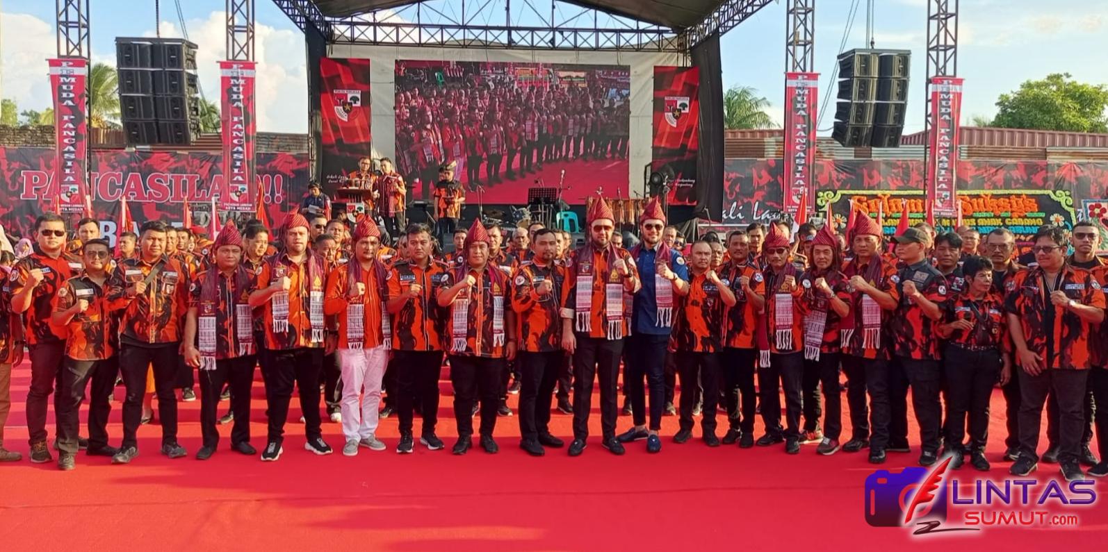 Acara yang digelar di lapangan kantor PAC PP Medan Labuhan jalan KL Yos Sudarso KM. 16 Medan itu diramaikan ribuan kader berseragam loreng oranye dan dimeriahkan dengan pertunjukan seni tradisional serta dihibur oleh penyanyi penyanyi terkenal. Minggu, (01/06/25).
