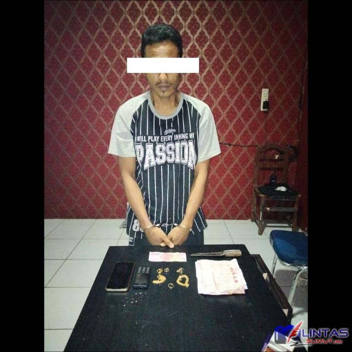 Tersangka Zulfin Adi Syahputra alias Ipin,34,warga Jalan Jumpul, Lk VI Kelurahan Kapias, Pulau Buaya, Kecamatan Teluk Nibung Kota Tanjung Balai berhasil ditangkap Unit Reskrim Polsek Teluk Nibung saat berada di Jalan Pancing Lk. II Kelurahan Perjuangan, Kota Tanjung Balai pada hari Kamis (21-1-2021) sekitar pukul 04.00 WIB. Dari tangan tersangka juga turut diamankan barang bukti berupa 2 buah cincin emas, 1 buah kalung emas, 1 buah gelang emas, uang tunai Rp. 100.000, 1 unit HP Vivo Y.20, 1 unit HP Nokia, 1 buah pisau.