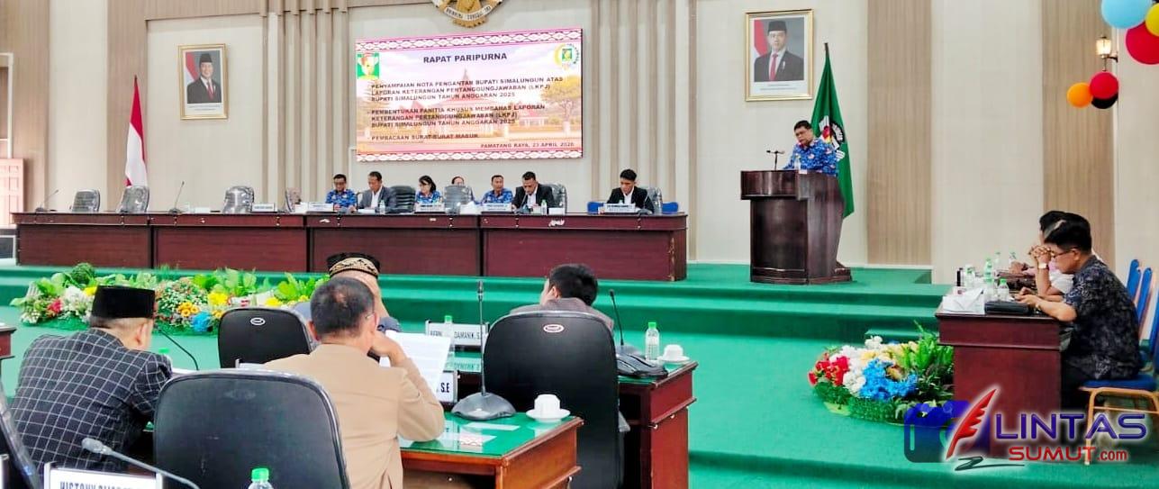 Pemerintah Kabupaten (Pemkab) Simalungun secara resmi menyampaikan Nota Pengantar Laporan Keterangan Pertanggungjawaban (LKPj) Tahun Anggaran 2025 kepada Dewan Perwakilan Rakyat Daerah.