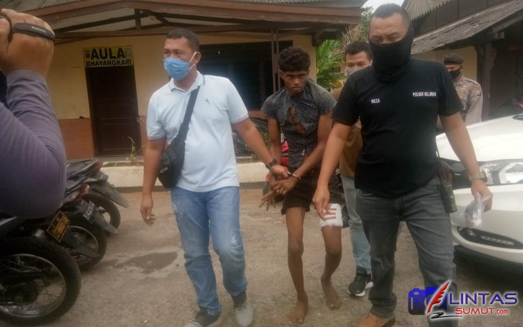 Pelaku perampokan terhadap Panitia Pengawas Kecamatan (Panwascam) Medan Belawan berhasil ditangkap. Pelakunya Arjun (27) warga Kecamatan Medan Belawan, pelaku terpaksa ditembak kakinya karena melakukan perlawanan saat ditangkap, Senin (13/07/20)