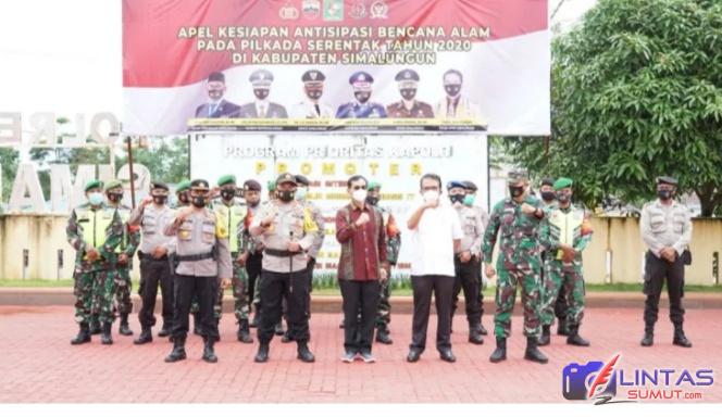 Bertempat di halaman Mapolres Simalungun mengelar Apel Gelar Pasukan Operasi Kontijensi Aman Nusa II Toba 2020 dalam ramgka kesiapsiagaan menghadapibencana, Senin (9/11/2020).