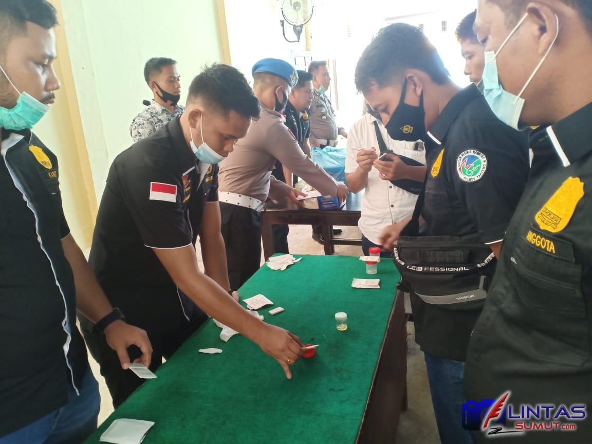 Satuan Resnarkoba dan Propam Polres Tapanuli Tengah melaksanakan Gaktibplin (Tes Urine) terhadap Personil Polres Tapteng di Lapangan Aula Polres Tapanuli Tengah, Rabu (24/2)