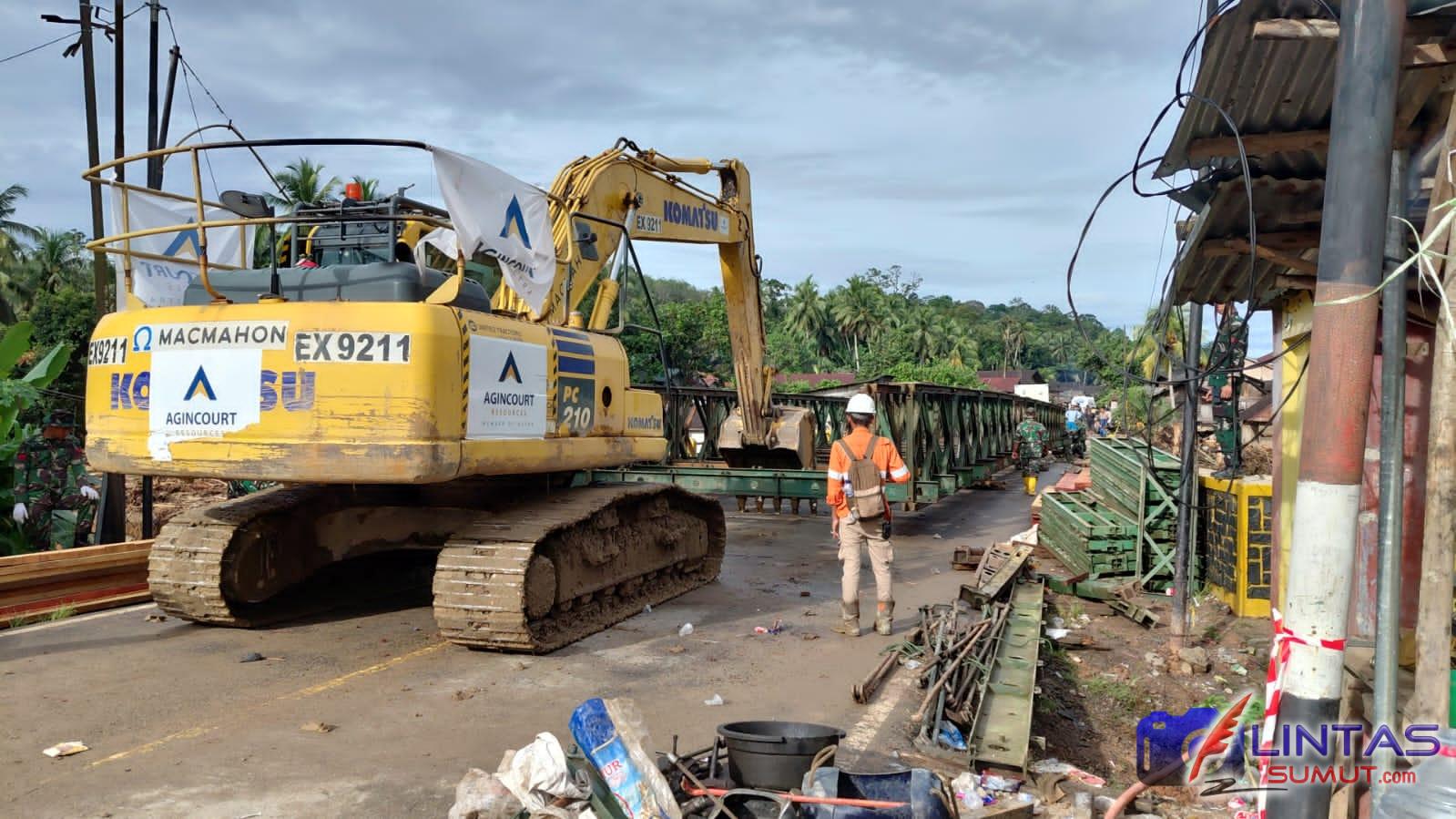 Proses pembangunan semakin terbantu setelah PT Agincourt Resources (PTAR) menurunkan alat berat untuk mendukung pengangkutan konstruksi Bailey dari Garoga 2 menuju Anggoli.