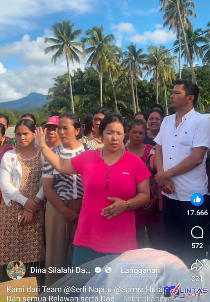 LINTASSUMUT.COM, TAPTENG | Konten kreator asal Siantar yang juga dikenal sebagai pejuang kanker, Dina Silalahi, bersama Team Serli Napitupulu, Sarma Hutajulu, relawan serta donatur, turun langsung memberikan bantuan kepada warga terdampak banjir bandang dan longsor di Desa Parik Sinomba, Kecamatan Barus Utara, Kabupaten Tapanuli Tengah, Kamis (4/12/2025).