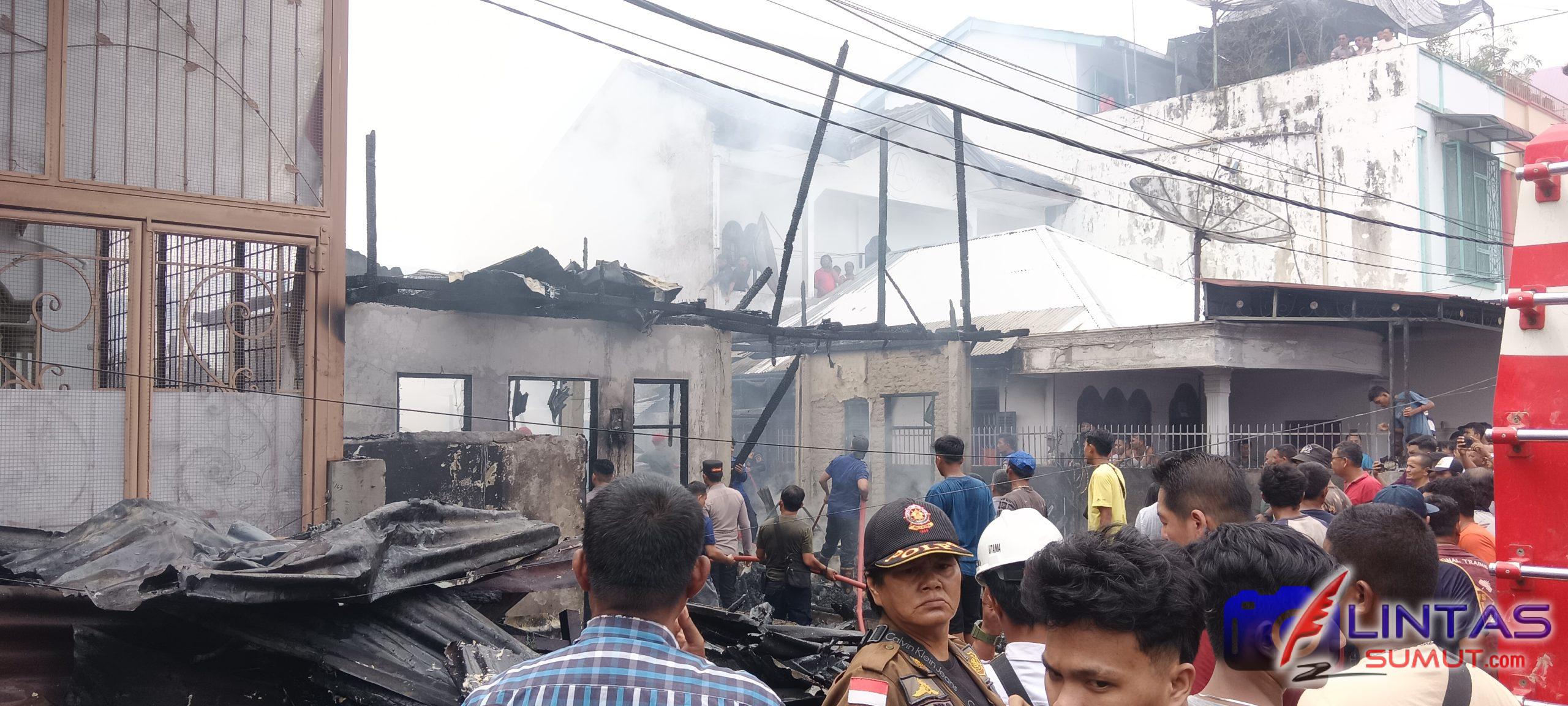 Amatan media, ribuan warga terlihat memadati ruas jalan Hiu Sibolga untuk menyaksikan peristiwa kebakaran tersebut.