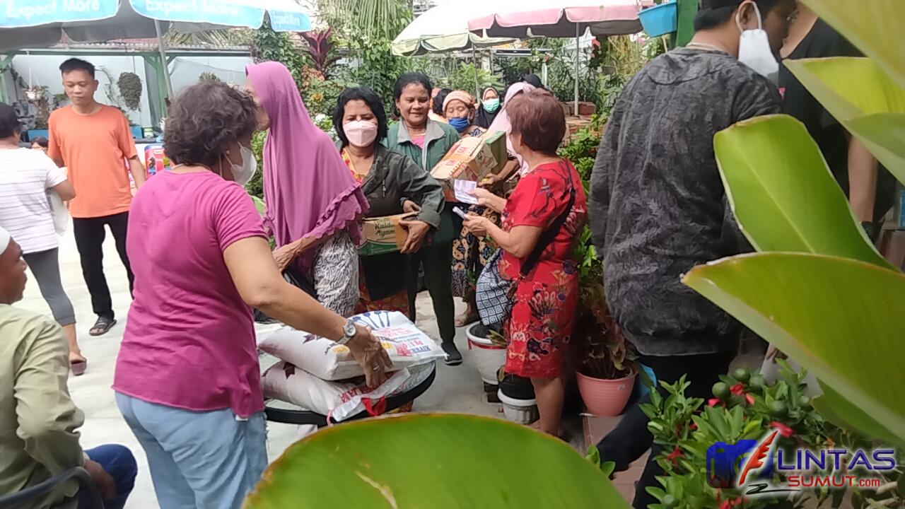 Pemberian paket sembako diberikan langsung oleh keluarga Nauli belawan, masyarakat yang menerimapun diminta agar tertip dan teratur.