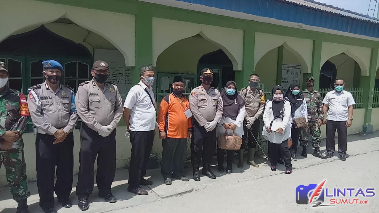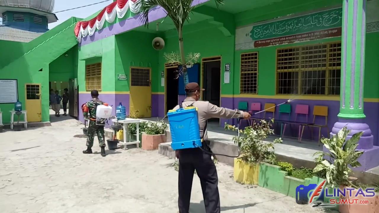 Polisi Sektor Tanjung Balai Utara (Polsek TBU) Polres Tanjung Balai menggelar penyemprotan Disinfektan di sekolah dan rumah ibadah serta membagikan 250 Masker gratis kepada masyarakat, Rabu (26/8).