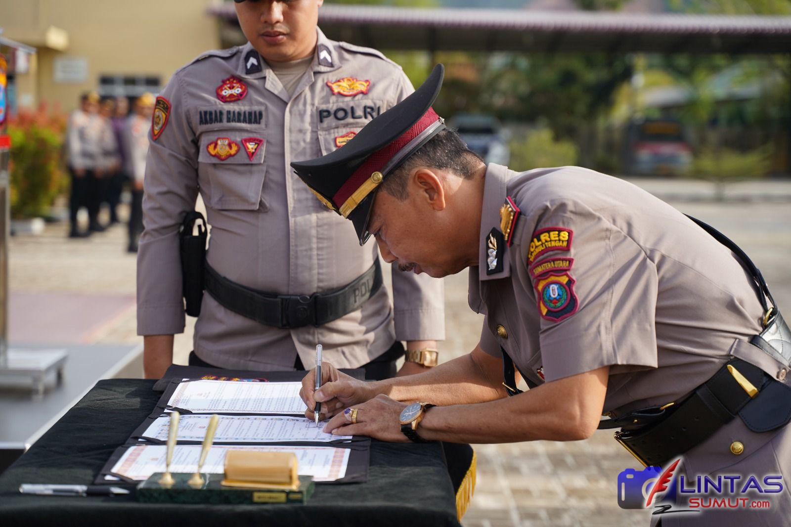 LINTASSUMUT.COM, TAPTENG | Kapolres Tapanuli Tengah, AKBP Muhammad Alan Haikel, S.K.M., S.I.K., M.I.K., memimpin upacara Serah Terima Jabatan (Sertijab) sejumlah pejabat utama di lingkungan Polres Tapanuli Tengah. Upacara berlangsung di Lapangan Mapolres Tapanuli Tengah, Selasa (20/1/2026) pagi, pukul 08.00 WIB.