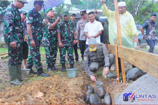 LINTASSUMUT.COM,TAPTENG | Dalam mewujudkan pembangunan ekonomi dan kesejahteraan masyarakat melalui sinergitas Pemerintah Kabupaten Tapanuli Tengah dengan TNI, maka Pgs Danrem 023 KS, Kolonel Inf. Agustinus Sinaga bersama Wakil Bupati Tapanuli Tengah, Mahmud Efendi meletakkan Batu Pertama Pembangunan Koperasi Desa Merah Putih Desa Aek Gambir Kecamatan Lumut, Jum’at (17/10/2025).