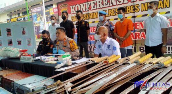 Grebek Lokasi Sky Garden, Polrestabes Medan Berhasil Amankan Puluhan Senjata Tajam dan Mesin Judi
