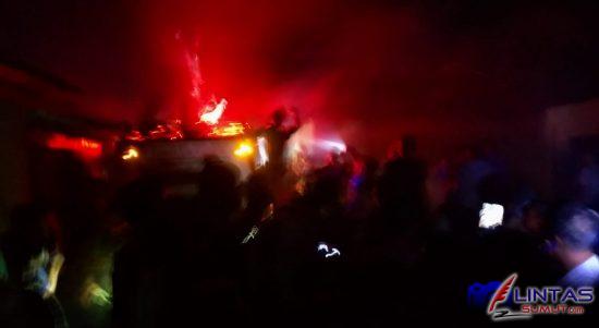 Lintas Sumut | Batu Bara – 2 Rumah semi permanen ludes terbakar di dusun V/Kenaga jalan Beringin Desa Bogak, Kec. Tanjung Tiram, sementara 1 satu rumah terpaksa dihancurkan warga guna
