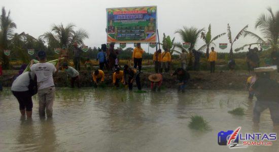 Sri Sultan Asahan Ke XII Dan DPR RI Dampingi Koptan Sri Mersing Tanam Padi Di Sei Tempurung