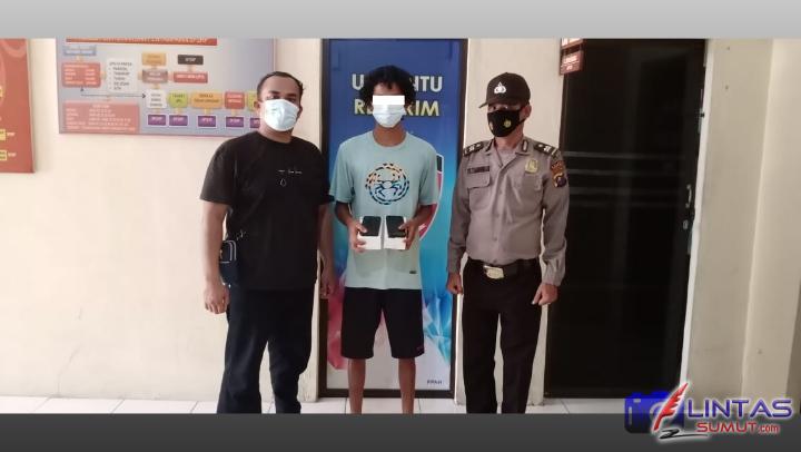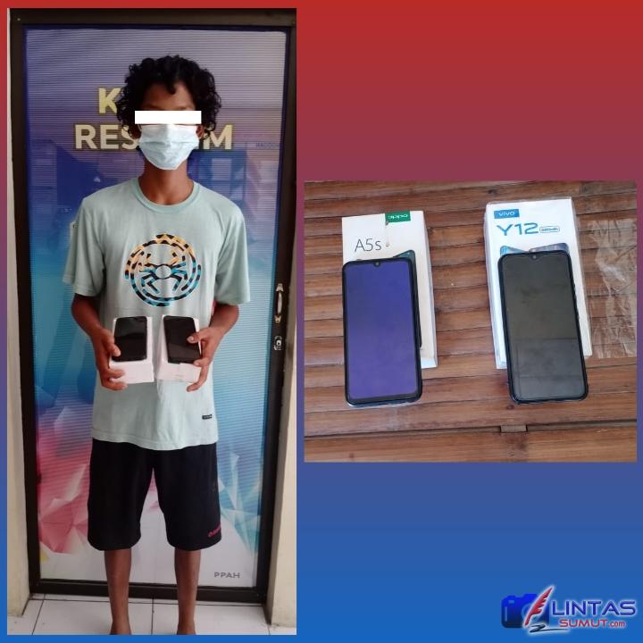 Unit Reskrim Polsek Teluk Nibung amankan WAHYUDI SYAHPUTRA alias CEMET,(24), Lk, Dusun IV Desa Silo Lama Kec. Silo Laut Kab. Asahan,gara gara curi HP dirumah warga.