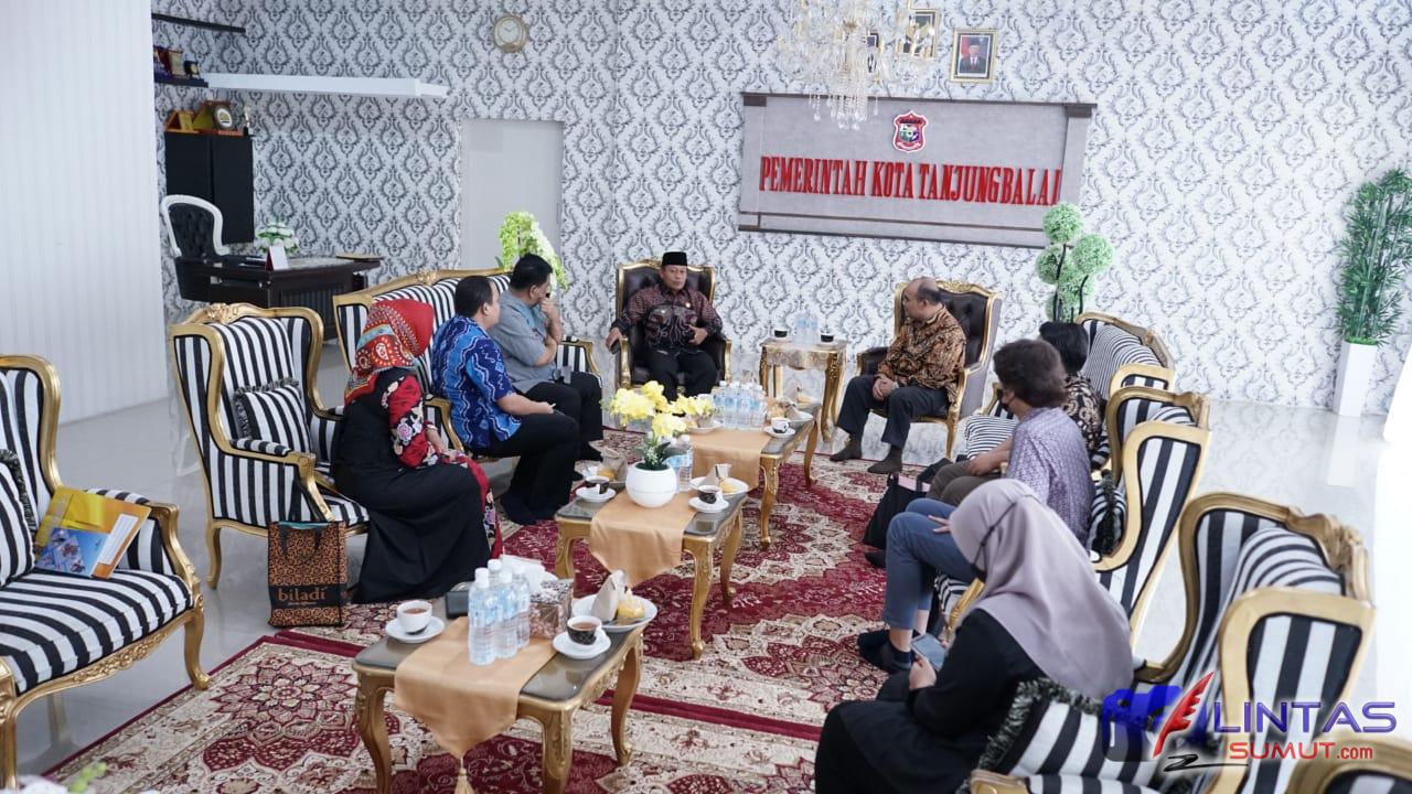 LINTAS SUMUT |  Tanjungbalai – Plt Wali Kota Tanjungbalai, H Waris Tholib didampingi Kepala BKD Abu Hanifah beserta jajaran menerima kunjungan dan audiensi Asisten Komisaris Komisi Aparatur Sipil Negara (KASN) Kusen Kusdinata beserta tim di rumah dinas Wali Kota, Jumat (22/7/2022).