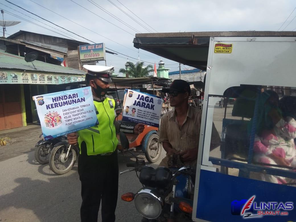 Guna memutus dan mencegah penyebaran virus Corona, Satlantas Polres Tanjung Balai menggelar Public Speaking himbauan penerangan Disiplin dan penegakkan Hukum Prokes (Protokol Kesehatan).
