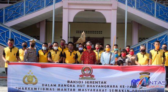 Lintas Sumut | Tapteng – Menyambut Hari Bhayangkara Ke 74 Polres Tapanuli Tengah memberikan bantuan paket sembako kepada masyarakat kurang mampu dan anak yatim piatu serta melihat Purnawirawan Polri yang