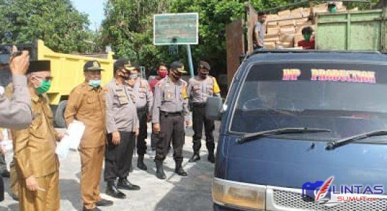 Lintas Sumut | Batu Bara – Bupati Batubara Ir H Zahir M.AP bersama Kapolres AKBP Ikhwan Lubis SH, MH meninjau posko bantuan sembako dari Provinsi Sumatera Utarà Terdampak Covid 19