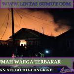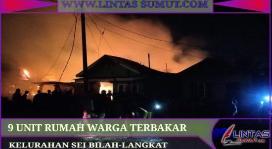 Lintassumut | Langkat. – Si jago merah menghanguskan sembilan unit rumah warga di Jalan Sei Bilah Lingkungan III, Kelurahan Sei Bilah, Kecamatan Sei Lepan, Kabupaten Langkat, Sumatera Utara, Sabtu (13/03/2021)