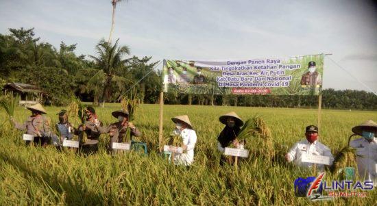 Lintas Sumut | Batu Bara – Bupati Batu Bara Ir. Zahir MAP dan Kapolres Batu Bara AKBP Ikhwan Lubis SH. MH melaksanakan potong padi pada acara Panen Raya dalam meningkatkan