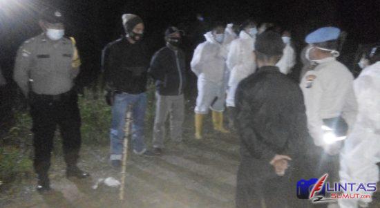 Lintas Sumut | Labuhanbatu Utara – Personil Kepolisian Polsek Kualuh Hulu Polres Labuhanbatu mengawal pemakaman jenazah Pasien Virus Corona (Covid-19), Jumat (2/10/2020) Sekira Pukul 22.00 Wib. Pemakaman diadakan di TPU